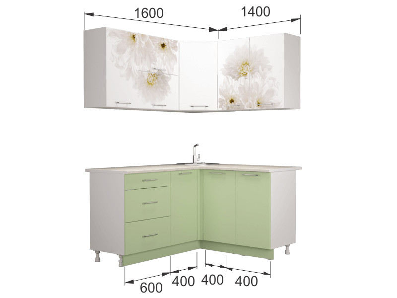 Комплектация Угловой кухни (размер 1600*1400) угол универсальный: